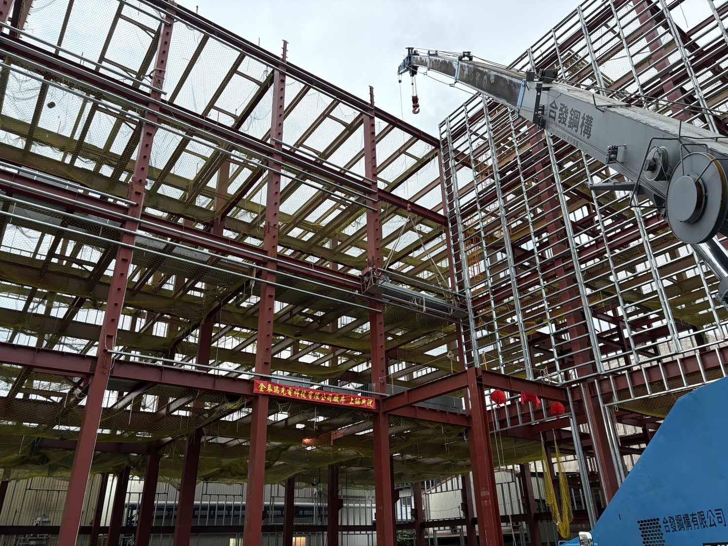 隨著主樑高掛定位,象徵金泰瑞光電的技術能量與企業願景將在此基地持續擴展。