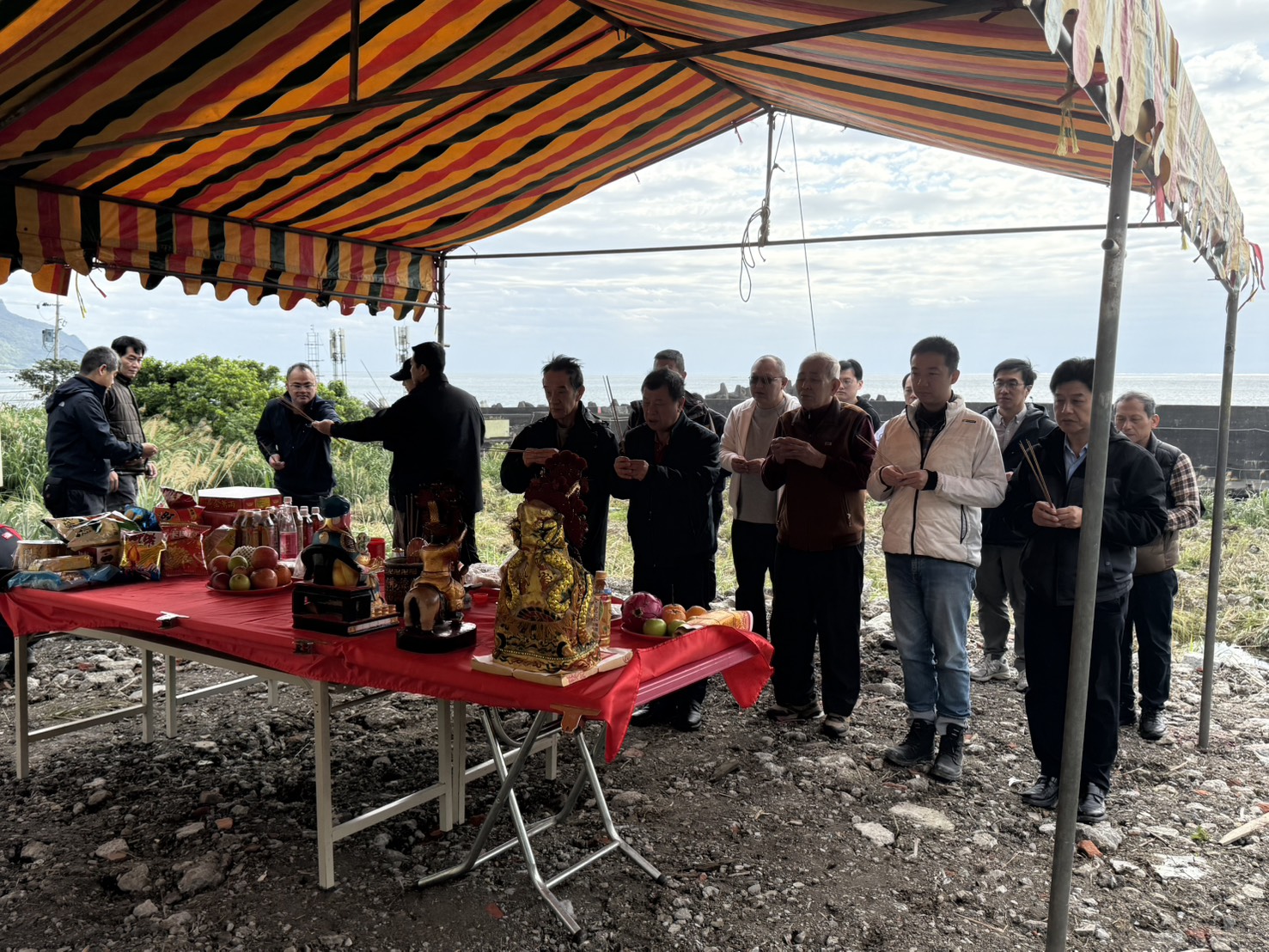 宜蘭近日陰雨綿綿,但就在儀式開始之際,大里海邊的天空奇蹟般地撥雲見日。溫暖的陽光穿透雲層灑在案頭上,這場難得的晴天,不僅象徵著工程開端的「天時、地利、人和」,更是對我們團隊最大的鼓舞。